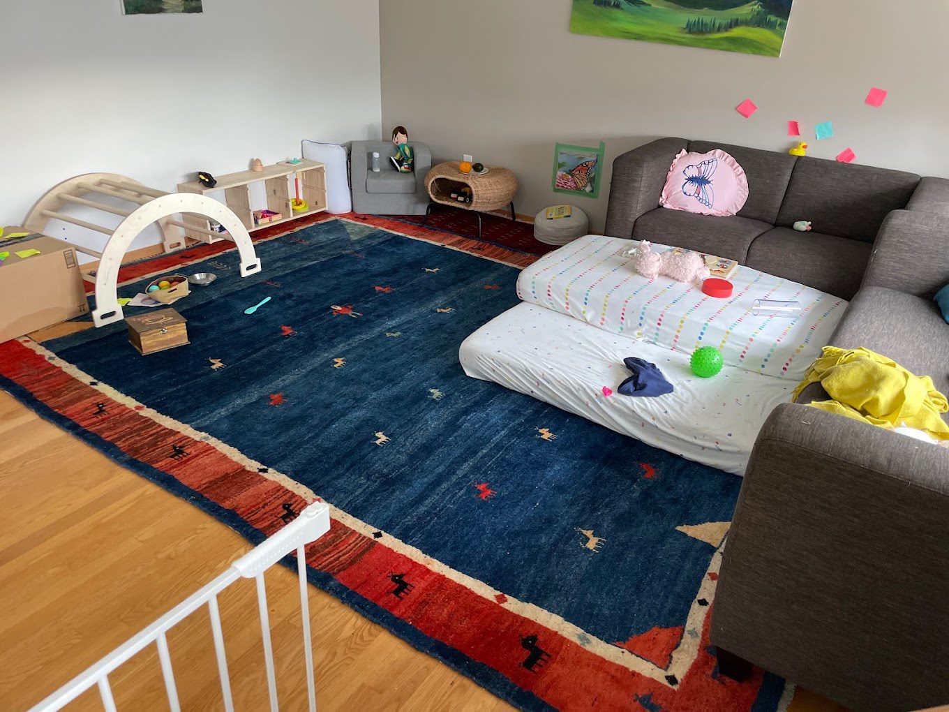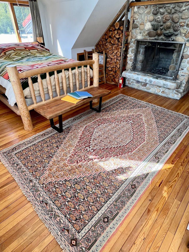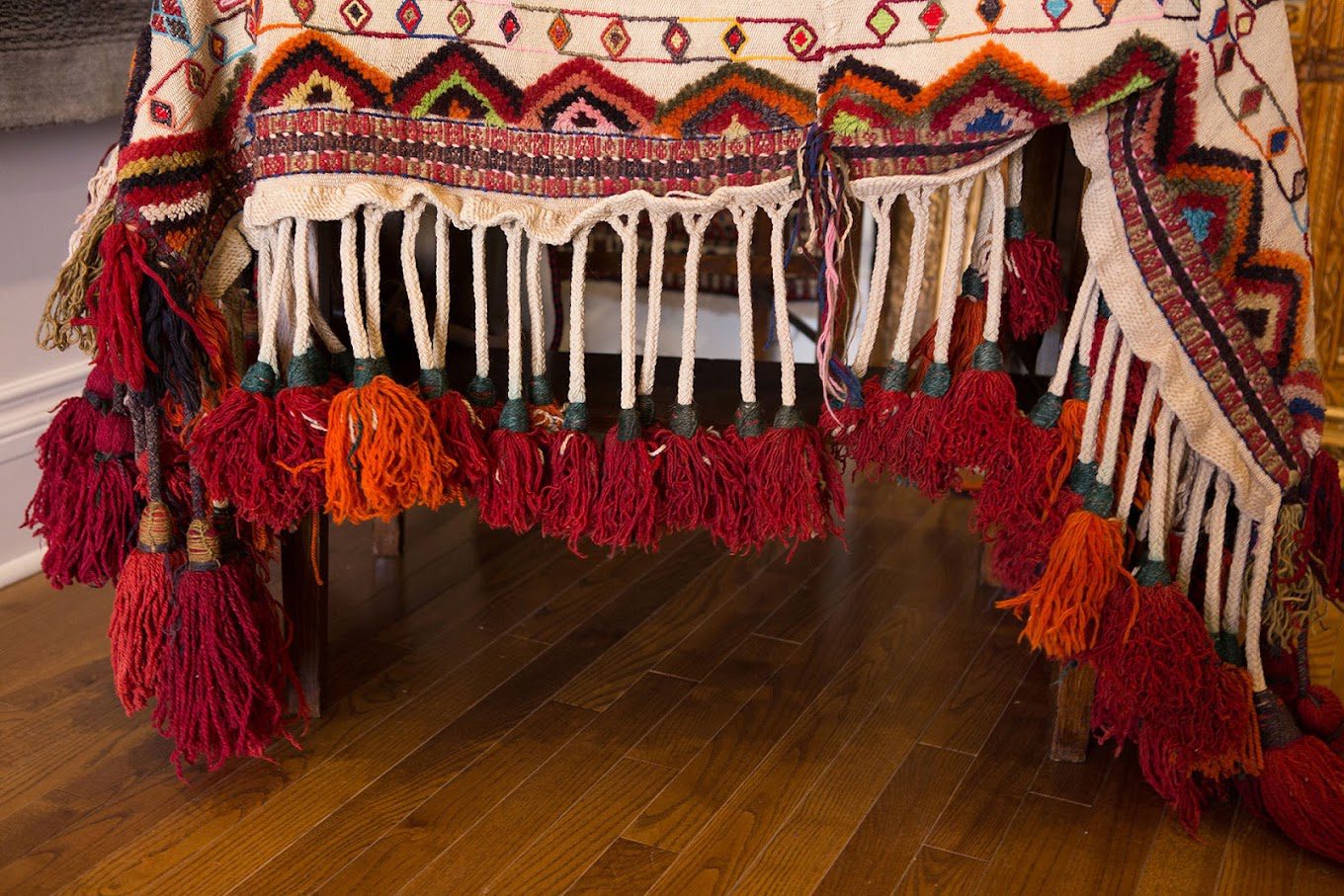 For really high traffic areas, it’s generally best to select a village carpet in darker colours. This is the most practical choice for a variety of reasons. First, the denser pile on most village rugs (as compared to typical tribal pieces) means less stuff penetrates the surface. A regular vacuum and perhaps a damp rag to pick up any other “bits” and the rug looks like new. Second, while any colour can be cleaned (Sarah once spilled an entire 16oz raspberry smoothie on an ivory Kirman and it cleaned up with no trouble), darker hues are more forgiving if the rug is likely to get snacks or mud squished into it.