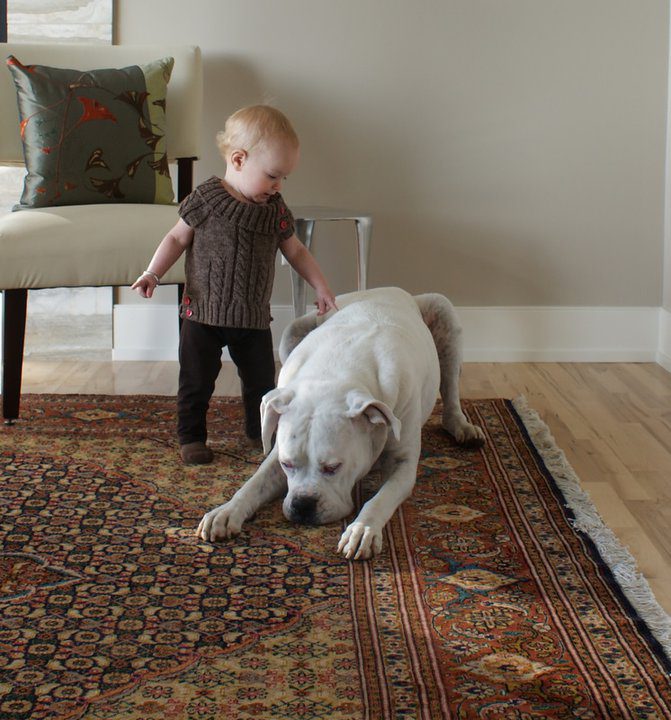 We often hear customers express concerns about putting a fine carpet in a home that includes kids or pets. Rest assured that a properly selected carpet is VERY easy to maintain and can put up with a lot! In fact, a good rug cleans so easily and wears so well it’s about the best flooring choice out there.